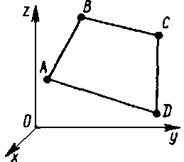 Материальные точки А, В, С и D соединенные между собой невесомыми жесткими стержнями постоянной длины, движутся в пространстве. Определить число степеней свободы системы материальных точек. Ответ округлить до целых. |