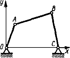 Определить число степеней свободы шарнирного четырехзвенника, если длины звеньев ОА = l1, АВ = l2 и BC = l3. Ответ округлить до целых. |