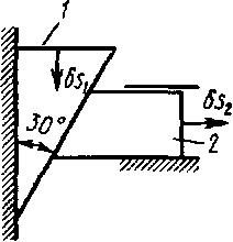 Определить отношение между возможными перемещениями δs1 клина 1 и δs2 клина 2. Ответ округлить до сотых. |