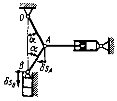 Определить отношение между возможными перемещениями δsA и δsB точек А и В шатуна механизма пресса, если длины ОА = АВ и угол α = 30°. Ответ округлить до сотых.
