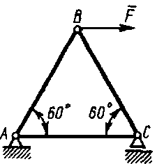 Определить усилие в стержне АС плоской фермы, если к узлу В приложена горизонтальная сила F = 6 Н. Ответ округлить до целых. |