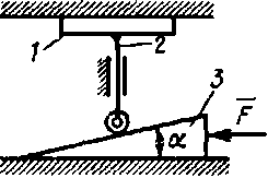 На клин 3 действует сила F = 100 Н. Определить с какой силой толкатель 2 прижимает деталь 1 к опорной плоскости в положении равновесия, если угол α = 11°. Ответ округлить до целых. |