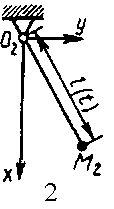 ![]() Уравнения связей для материальных точек М1 и М2 математических маятников постоянной l = const и переменной l(t) длины имеют вид: х2 − y2 − l2 ≤ 0 ; х2 − y2 − [l(t)]2 ≤ 0. На каком рисунке на точку наложена голономная нестационарная связь? Ответ округлить до целых. |