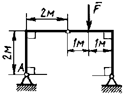 На первую часть трехшарнирной арки действует вертикальная сила F = 8 Н. Определить модуль вертикальной составляющей реакции шарнира A. Ответ округлить до целых. |