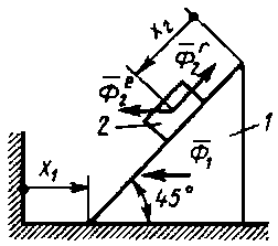 Определить обобщенную силу инерции, соответствующую обобщенной координате х1, если сила инерции тела 1 Ф1 = 5 Н, переносная и относительная силы инерции тела 2 соответственно Фе2 = 1 Н, Фr2 = 8 Н. Ответ округлить до тысячных.