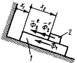 Определить обобщенную силу инерции, соответствующую обобщенной координате х2, если сила инерции тела 1 Ф1 = 8 Н, переносная и относительная силы инерции тела 2 соответственно Фе2 = 5 Н, Фк2 = 5 Н. Ответ округлить до целых.