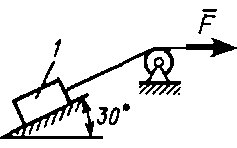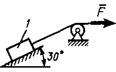 Определить модуль силы F, под действием которой тело 1 массой m = 1 кг поднимается по шероховатой наклонной плоскости с постоянным ускорением а = 1 м/с2 . Коэффициент трения скольжения f= 0,1. Ответ округлить до сотых. |