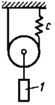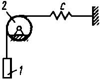 Определить угловую частоту свободных вертикальных колебаний тела 1, если его масса m = 1 кг, коэффициент жесткости пружины с = 100 Н/м. Ответ округлить до целых. |