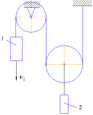 Скорость груза 1 v1 = 2 м/с. Определить скорость груза 2. |