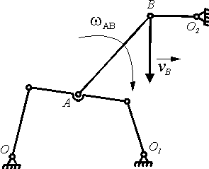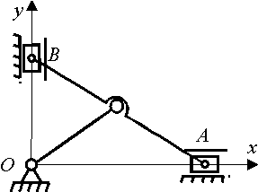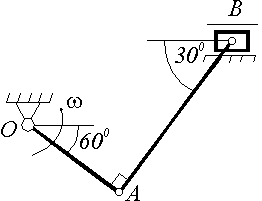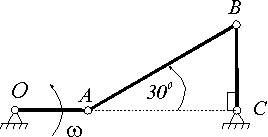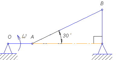 Определить для показанного на рисунке положения механизма угловую скорость звена АВ, длина которого 0,2 м, если точка А имеет скорость 1 м/с.![]() |