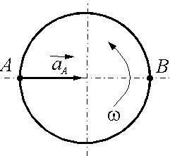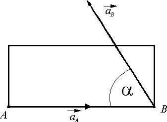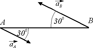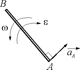Стержень длиной АВ = 40 см движется в плоскости чертежа. В некоторый момент времени точки А и В стержня имеют ускорения аA = 2 м/с2 и аA = 6 м/с2. Определить угловое ускорение стержня. |
