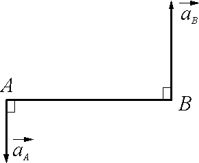 Стержень длиной АВ = 40 см движется в плоскости чертежа. В некоторый момент времени точки А и В стержня имеют ускорения аA = 2 м/с2 и аA = 6 м/с2. Определить угловое ускорение стержня.