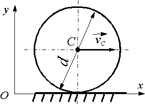 Колесо диаметра d = 2 м катится без скольжения так, что его точка С перемещается по закону xс = 20 t. Определить расстояние между мгновенным центром скоростей и мгновенным центром ускорения.