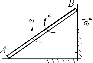Стержень АВ длиной 50 см движется в плоскости чертежа. В некоторый момент времени точки А и В стержня имеют ускорения aAy = 2 м/с2, aВy = 3 м/с2. Определить угловое ускорение стержня.