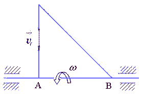 Стержень 1 кулисного механизма движется вверх со скоростью v1 = 2 м/с. Для заданного положения механизма определить угловую скорость кулисы 2, если расстояние l = 40 см. Ответ округлить до сотых. |