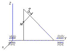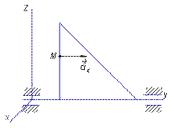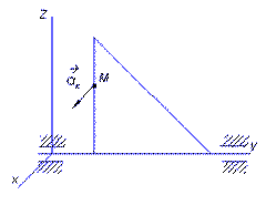 | Точка М движется от начала координат со скоростью v = 2 м/с по стержню, образующему угол 30° с вертикальной осью вращения Оz. Угловая скорость ω = 4 рад/с. Определить проекцию на ось Ох кориолисова ускорения точки М, когда стержень находится в плоскости Оуz. Ответ округлить до целых. |
