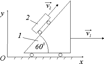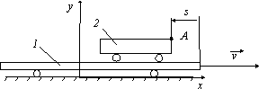 Платформа 1 движется по горизонтали равномерно со скоростью v = 1,5 м/с. Тело 2 относительно платформы движется по закону s = 0,5 t. Найти закон движения тела 2, если при t = 0 xA = 0. |