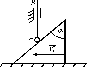 По грани призмы, движущейся со скоростью ve, скользит конец стержня АВ. При каком угле α в градусах абсолютная скорость