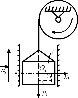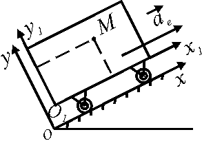Кабина лифта поднимается с постоянным ускорением ае = 5 м/с2. Внутри кабины в плоскости чертежа движется точка М по закону x1 = 0,5t2 и у1 = 0,3t2. Определить абсолютное ускорение точки М. Ответ округлить до сотых. |