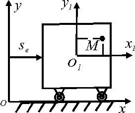 Тележка движется по закону sе = 0,5 t3. По тележке в плоскости чертежа движется точка М согласно уравнениям х1 = 0,3 t и у1 = 0,1t 2. Определить абсолютное ускорение точки М в момент времени t = 1 с. Ответ округлить до сотых.