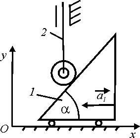 По горизонтальной плоскости движется кулачок 1 с ускорением а1 = 0,6 м/с2. Определить ускорение толкателя 2, если угол α = 30°. Ответ округлить до тысячных. |