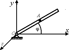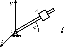 По стержню, вращающемуся по закону φ = 2t вокруг оси Оz, движется ползун А по закону ОА = 3t3. Пренебрегая размерами ползуна, определить его координату уА в момент времени t = 0,5 с. Ответ округлить до тысячных. |