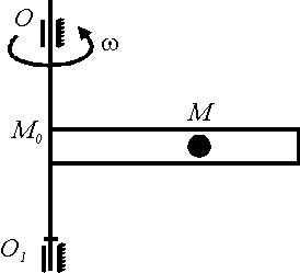 Трубка вращается вокруг оси ОО1 с угловой скоростью ω = 1,5 рад/с. Шарик М движется вдоль трубки по закону М0М = 4t. Найти модуль ускорения Кориолиса шарика. |