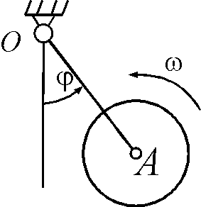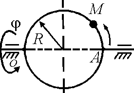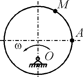 Диск-эксцентрик равномерно вращается в плоскости чертежа. По его ободу движется точка М по закону АМ = 1,5t2. Чему должна равняться угловая скорость диска ω, для того чтобы ускорение Кориолиса точки М в момент времени t = 1 с было равно 24 м/с2?