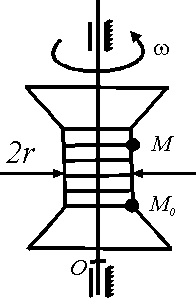 Катушка вращается вокруг оси ОО1 с угловой скоростью ω = 2 рад/с. Вдоль катушки перемещается точка М по закону МоМ = 0,04t2. Определить абсолютное ускорение точки М, если радиус r = 0,02 м. Ответ округлить до тысячных. |