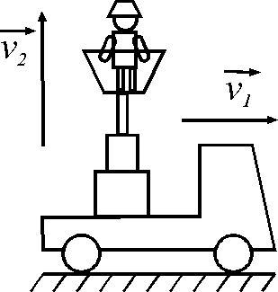 Автомобиль двигается со скоростью v1 = 0,6 км/ч, а монтажная вышка поднимается со скоростью v2 = 0,8 м/с. Определить абсолютную скорость рабочего, который стоит на вышке неподвижно. |