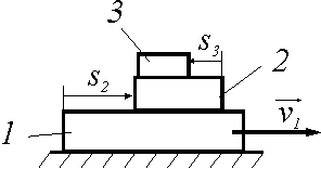 Тела 1, 2, 3 находятся в поступательном прямолинейном движении. Тело 1 движется со скоростью v1 = 3 м/с, тела 2 и 3 — согласно законам s2 = 2 t2 , s3 = 3 t2 . Определить абсолютную скорость тела 3 в момент времени t = 1 с.
