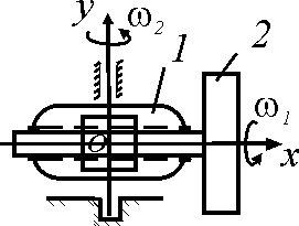 Вал 2 вращается с угловой скоростью ω 1 = 2 рад/с относительно корпуса 1. Определить косинус угла между вектором абсолютной угловой скорости вала и осью х, если корпус 1 вращается с угловой скоростью ω2 = 4 рад/с. Ответ округлить до тысячных.