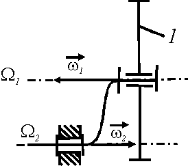 Колесо 1 одновременно находится в двух вращательных движениях вокруг осей Ω1 и Ω2 с угловыми скоростями ω1 = 4 рад/с и ω2 = 3 рад/с. Определить модуль абсолютной угловой скорости колеса.