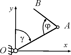 Углы плоского механизма изменяются согласно уравнениям φ = 0,2 t, γ = 0,1t2. Определить модуль абсолютной угловой скорости стержня АВ в момент времени t = 4 с.