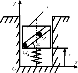 Точка М маятника движется по окружности радиуса r = 0,1 м согласно уравнению s = 0,01 sin10 t в лифте, опускающемся с постоянным ускорением а = 0,1 м/с2. Определить модуль абсолютного ускорения точки М в момент времени, когда координата s = 0. |