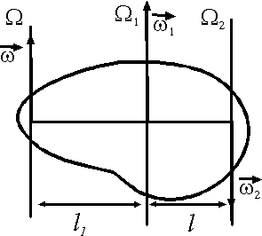 Тело одновременно находится в двух вращательных движениях вокруг осей вращения Ω1 и Ω2 с угловыми скоростями ω1 = 4 рад/с, ω2 = 2 рад/с. Определить расстояние l1 в см между осью Ω1 и мгновенной осью Ω абсолютного вращения тела, если расстояние l = 50 см.