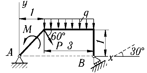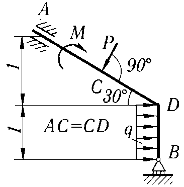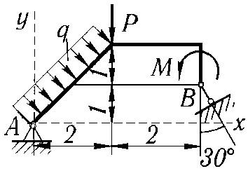 | 30 | P = 20 кН, M = 10 кН·м, q = 2 кН/м |  |