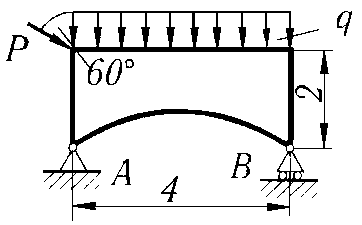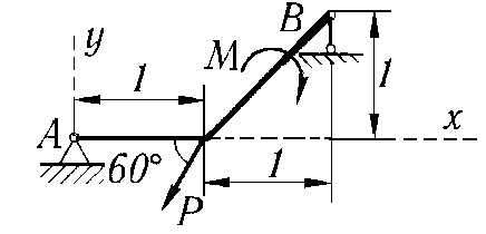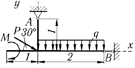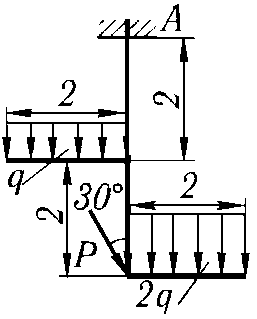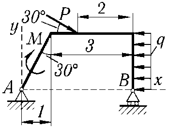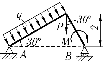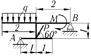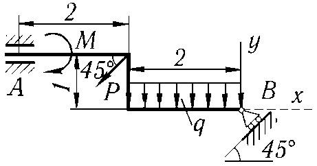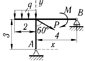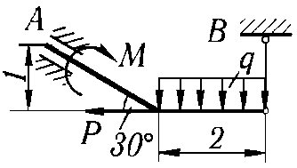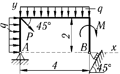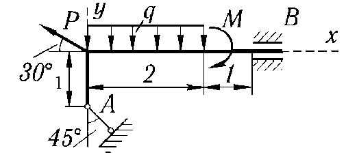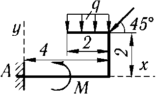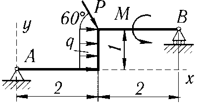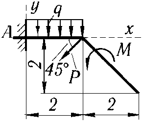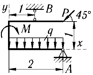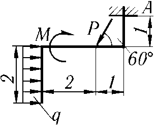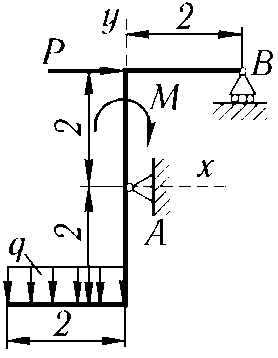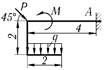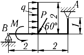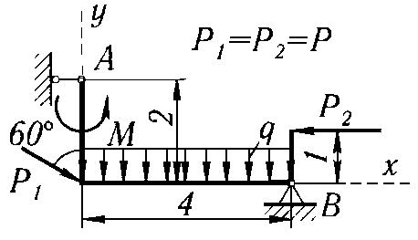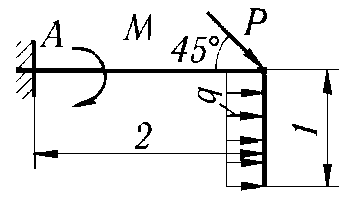 | 2 | P = 20 кН, М = 5 кН·м, q = 2 кН/м |  |