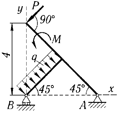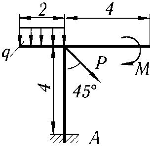 | 8 | P = 20 кН, М = 10 Кн·м, q = 4 кН/м |  |