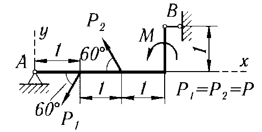 | 5 | P = 10 кН, М = 4 кН·м, P1 = P2 = P |  |