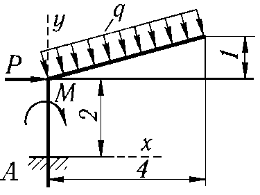 | 3 | P = 15 кН, М = 8 кН·м, q = 1 кН/м |  |