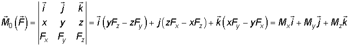 По определению векторного момента силы относительно точки и векторного произведения в координатной форме, получим координаты векторного момента силы
