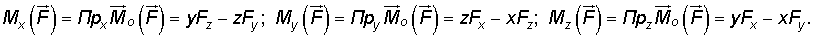 Формулы для моментов силы относительно осей координат