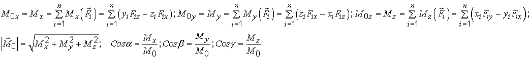 Проекции, величина и направляющие косинусы главного момента определяются соотношениями
