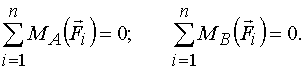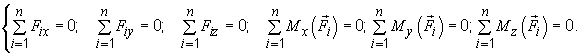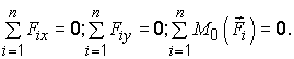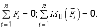 { F1, F2, …, Fn } ↔ { R, М0 } ↔ 0 ↔ R = 0, М0 = 0.
