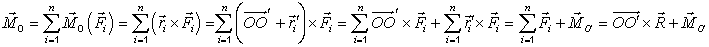 Соотношения между главными моментами системы сил относительно двух различных центров приведения