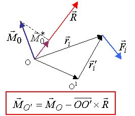 Mo' = Mo − OO'×R, Расписывая скалярные произведения в координатной форме, получим