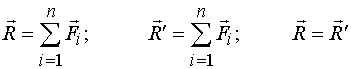 - Соотношения между главными моментами системы сил относительно двух различных центров приведения.