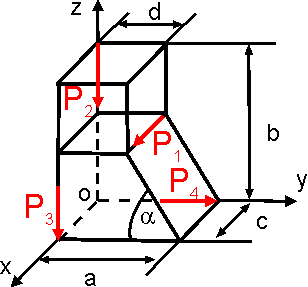 a = 0,5м; b = 0,6; c = 0,5; d = 0,3 м; α = 45°.