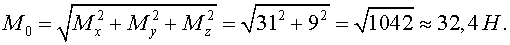 > M:=evalm(M1+M2+M3+M4);# Главный момент системы сил относительно начала координат